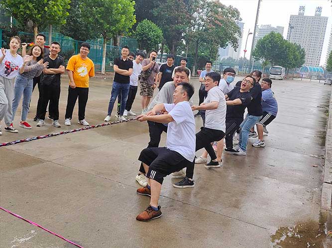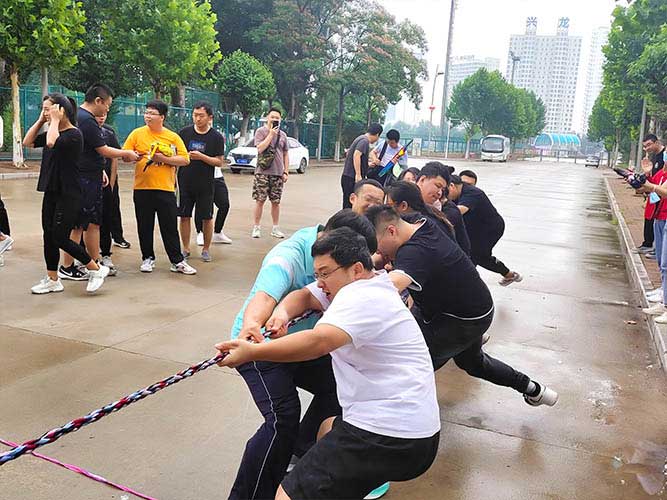 哨聲響起,比賽一觸即發(fā)!大家團(tuán)結(jié)一致努力拼搏著!有的緊握麻繩,咬牙使勁;有的扎穩(wěn)腳步,不可撼動(dòng);有的身體向下傾斜,鉚勁拉繩……大家的勁往一處兒使,心往一處兒聚。全神貫注的眼神、奮力拉扯的身影,無(wú)不彰顯了員工們的意志。