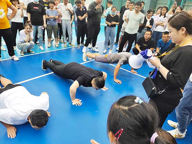 接下來是兩個(gè)單人加分項(xiàng),先是為男生準(zhǔn)備的俯臥撐,當(dāng)然,如果有女生想挑戰(zhàn)的,也可以上場(chǎng),并且冠*可以直接去選一個(gè)獎(jiǎng)品拿走。