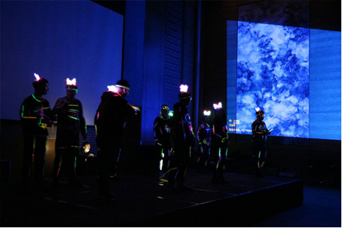 讓我們舒緩一下緊張的情緒,讓我們一起欣賞接下來的精彩表演——熒光舞